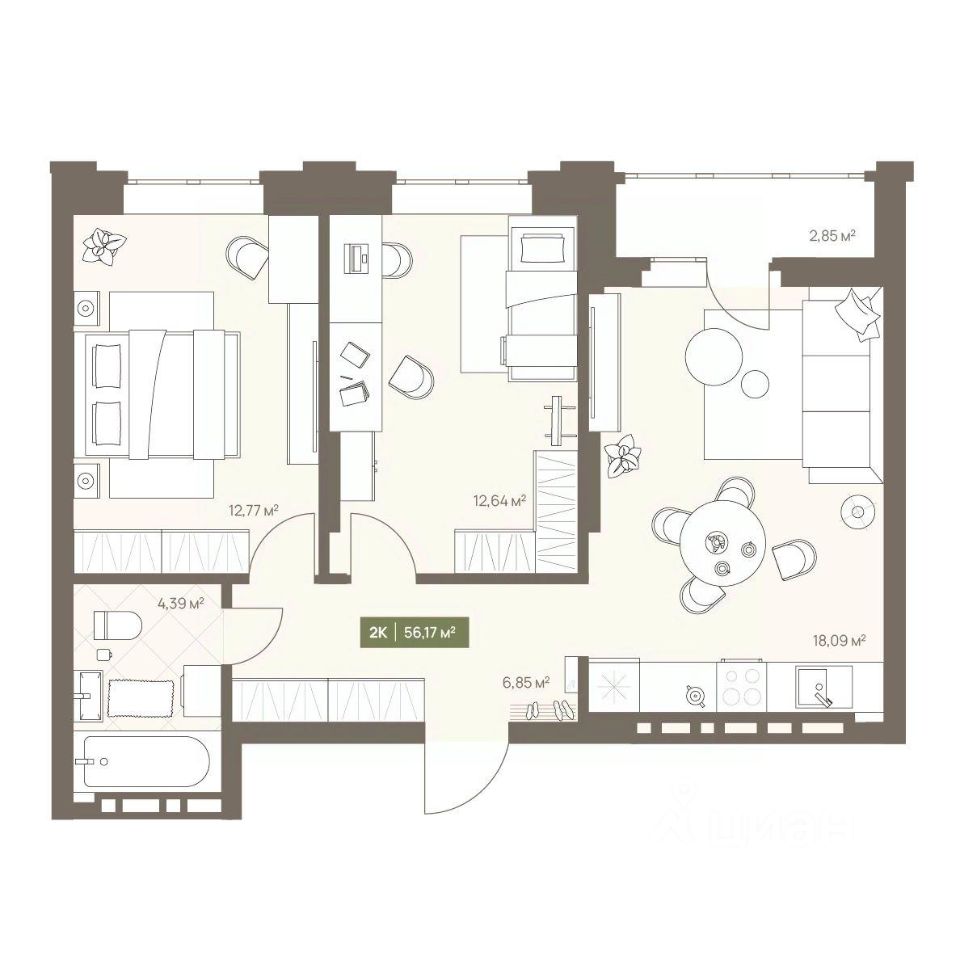В жилом комплексе NOVA на Московском в продаже квартира N 138 площадью 56.17 кв.м. Кирпич от фасадов до межкомнатных стен, высокие потолки, большие окна и остекленная лоджия. Квартира сдается в отделке white box. 17-этажный дом, с последних этажей которого открываются панорамные виды на город.