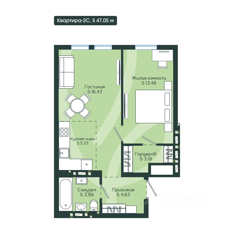 Общая площадь47,05 м²