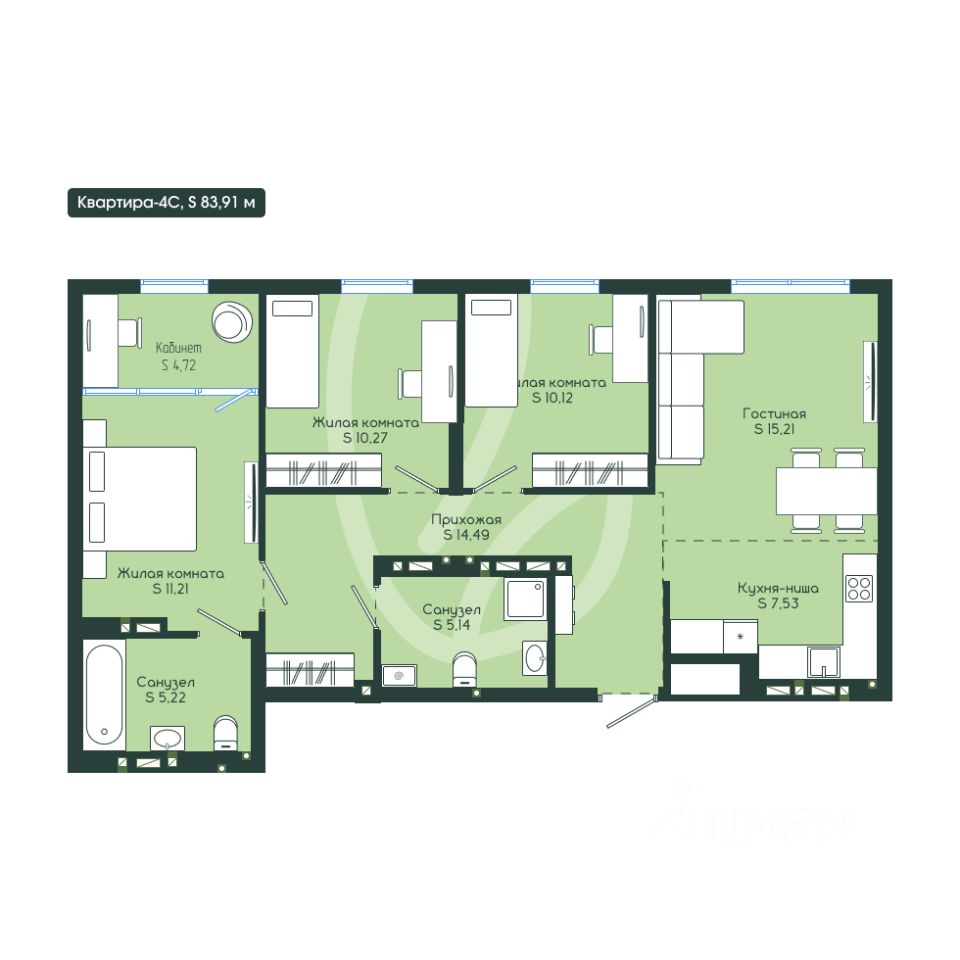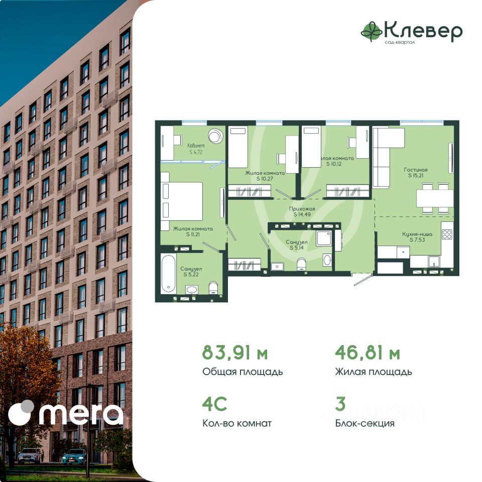 Общая площадь83,91 м²