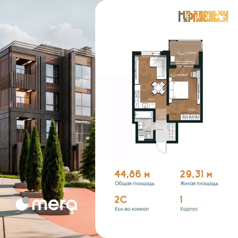 2-комнатная евро-квартира в новостройке от застройщика — ЖК "Ёлки — город в лесу".