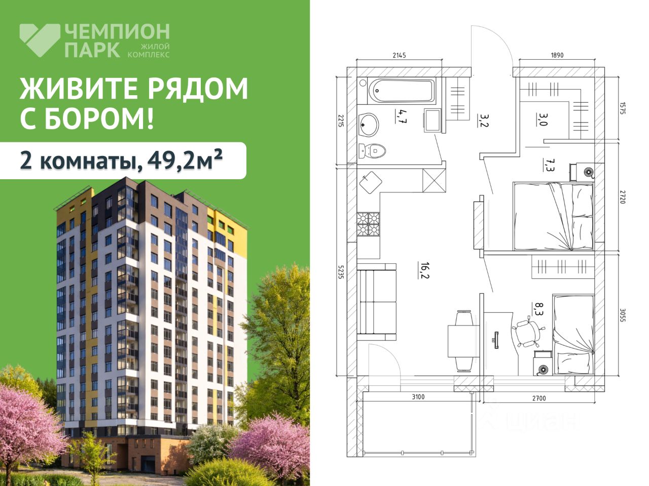 Продажа квартиры НАПРЯМУЮ ОТ ЗАСТРОЙЩИКА в ЖК Чемпион парк ДО КОНЦА МАРТА ДЕЙСТВУЮТ АКЦИИ: СТАВКА 3,5% НА ВЕСЬ СРОК, ЦВЕТУЩЕЕ КОМБО - СКИДКА ДО 15% ПРИ ПОКУПКЕ КВАРТИРЫ ВМЕСТЕ С ПАРКОВКОЙ/КЛАДОВОЙ И ДРУГИЕ ПРЕДЛОЖЕНИЯ! Болеe подpобную информацию менеджер предоставит по телефону! Звоните! ЖК Чемпион парк - это жилая среда для целеустремленных и уверенных людей, которые выбирают городской комфорт и динамичный образ жизни. Адрес: Институтская, 32 Преимущества: Закрытая внутренняя территория Дизайнерская отделка подъездов Подземный паркинг с лифтом Ивент-комната, фитнес для жителей Школы и детские сады рядом с домом 5 минут до торговых центров "Радуга", "РИО", "Север" СВОБОДНАЯ ПЛАНИРОВКА И С ВИДОМ НА БОР Удобные способы покупки: Ипотека Обмен Вашей старой квартиры на новую в ЖК Чемпион парк Материнский капитал Наличная оплата Наши менеджеры подберут для Вас лучшее предложение! Звоните, пишите в чат прямо сейчас и узнавайте больше о всех действующих акциях в ЖК Чемпион Парк