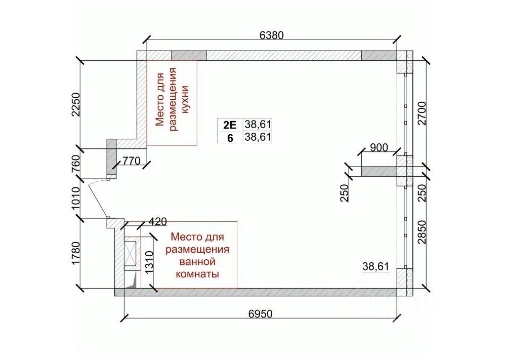 Общая площадь38,61 м²