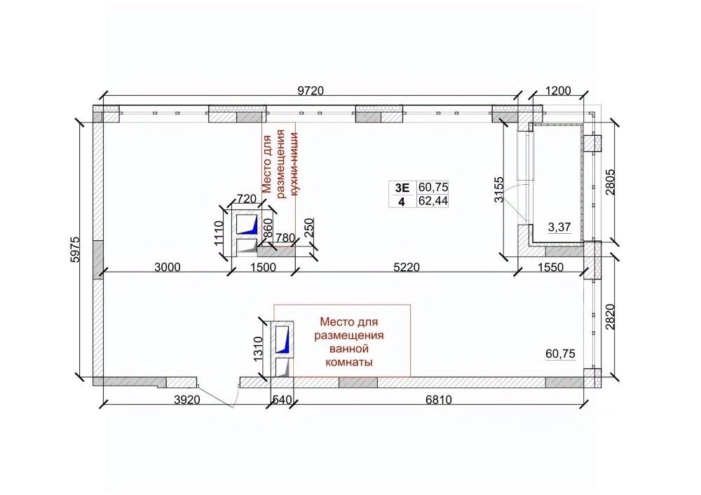 Общая площадь62,44 м²