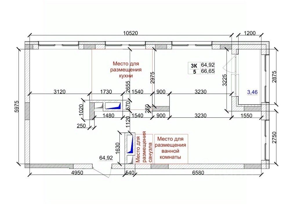 Общая площадь66,65 м²