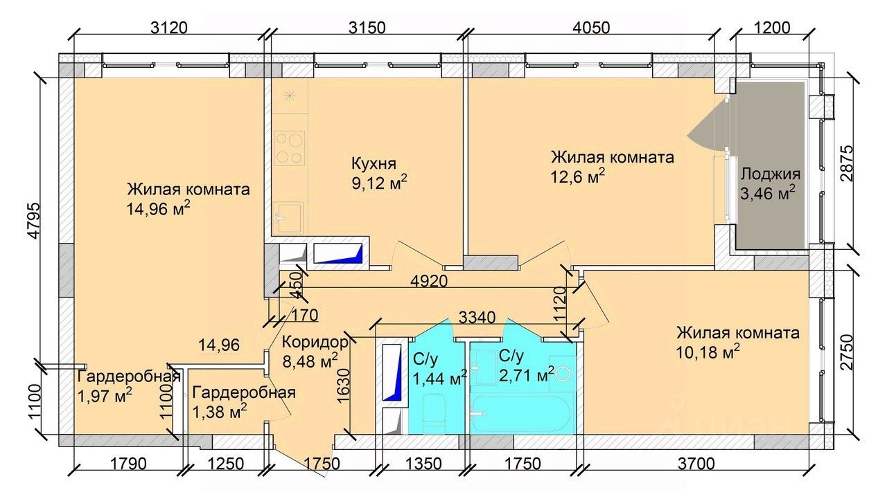 Продается 3-комн. квартира, 66,65 м²
