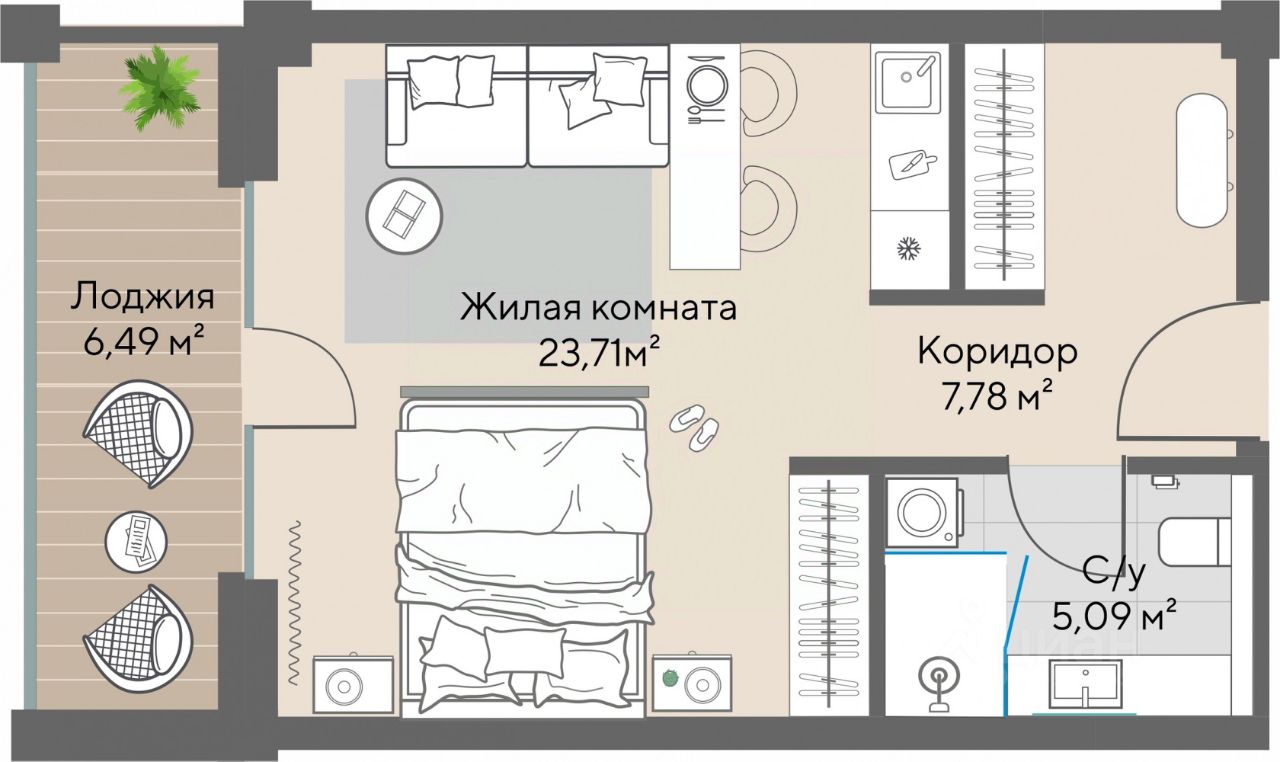 — компактные студии от 23,3 кв.м;