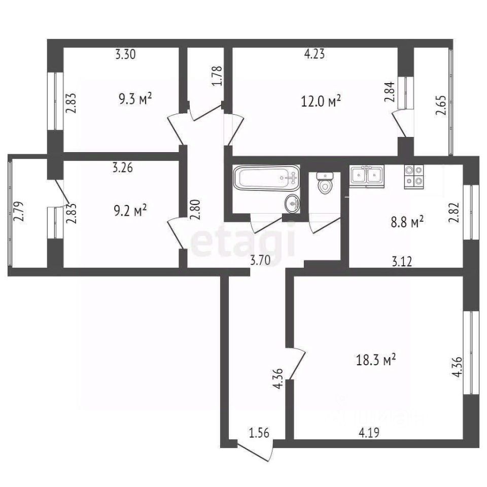 Комнаты раздельные, квадратный зал, кухня 9 кв.м., просторный коридор, 2 балкона, кладовая комната/гардеробная внутри квартиры. Окна на разные стороны. Санузел раздельный.