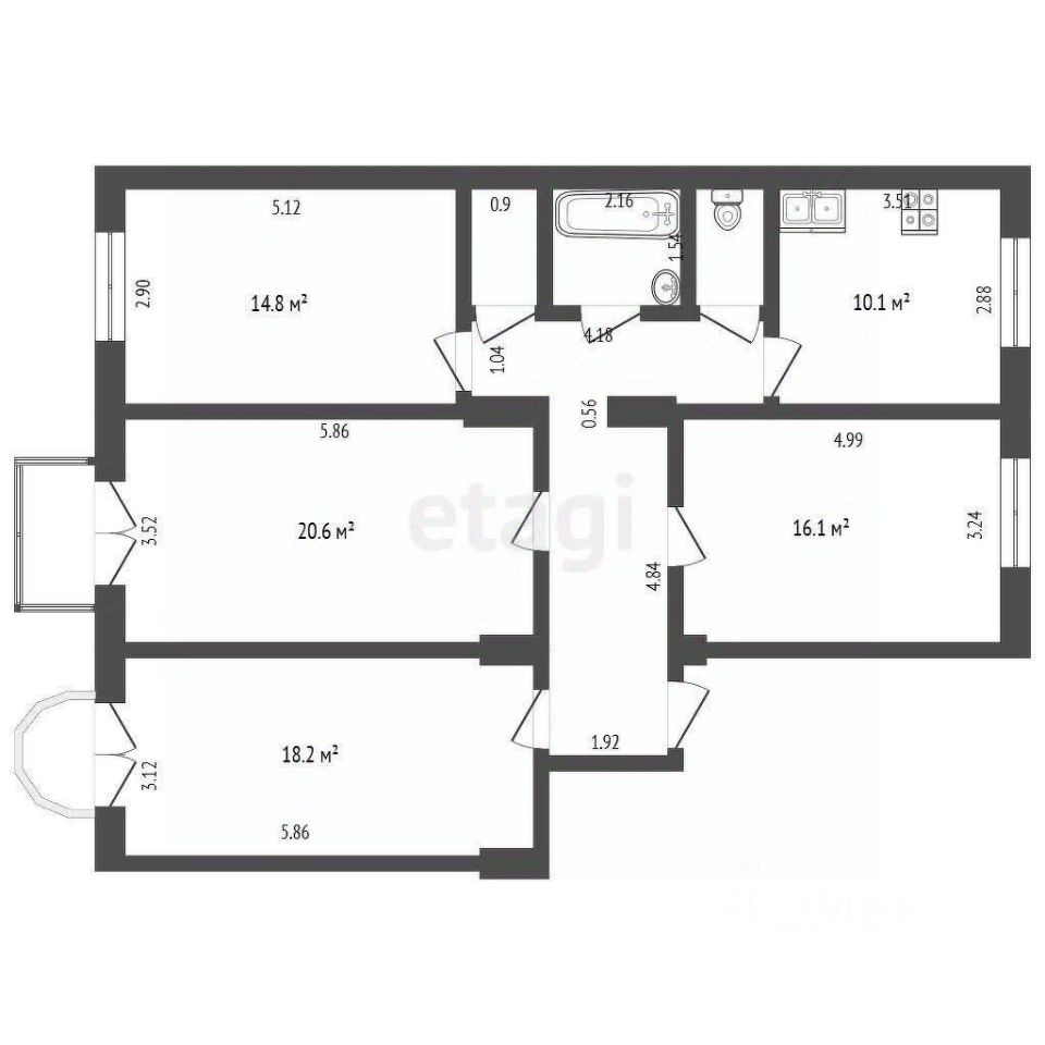 Высокие потолки создают ощущение простора, а два балкона, один из которых застеклен, позволят наслаждаться свежим воздухом и прекрасными видами.