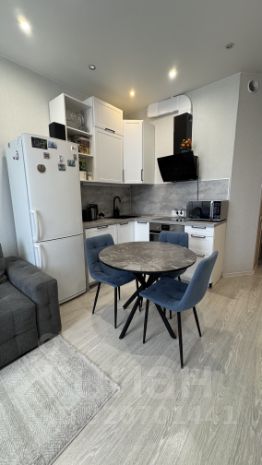 Кухня совмещена с гостиной( 15 кВ) в удобном, распланированном варианте, свободно размещается обеденная группа. Европейские дорогие обои, на полу ламинат.