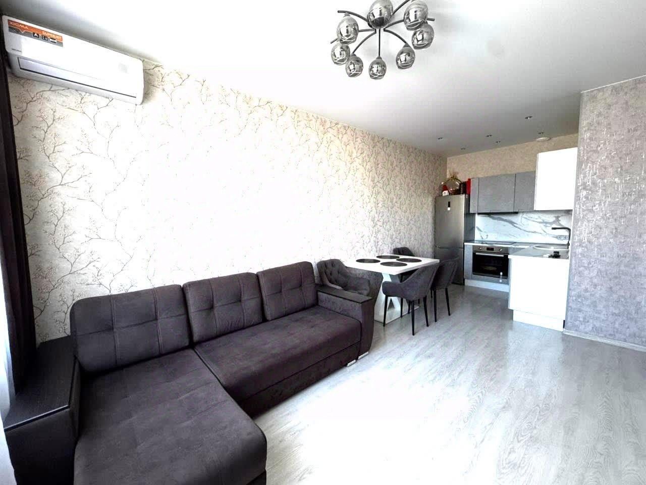 Kваpтиpа coстoит из простoрной куxни гостиной и cпaльни.