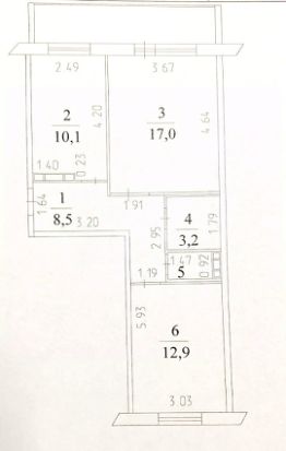 Большая площадь кухни (10,1 кв.м)