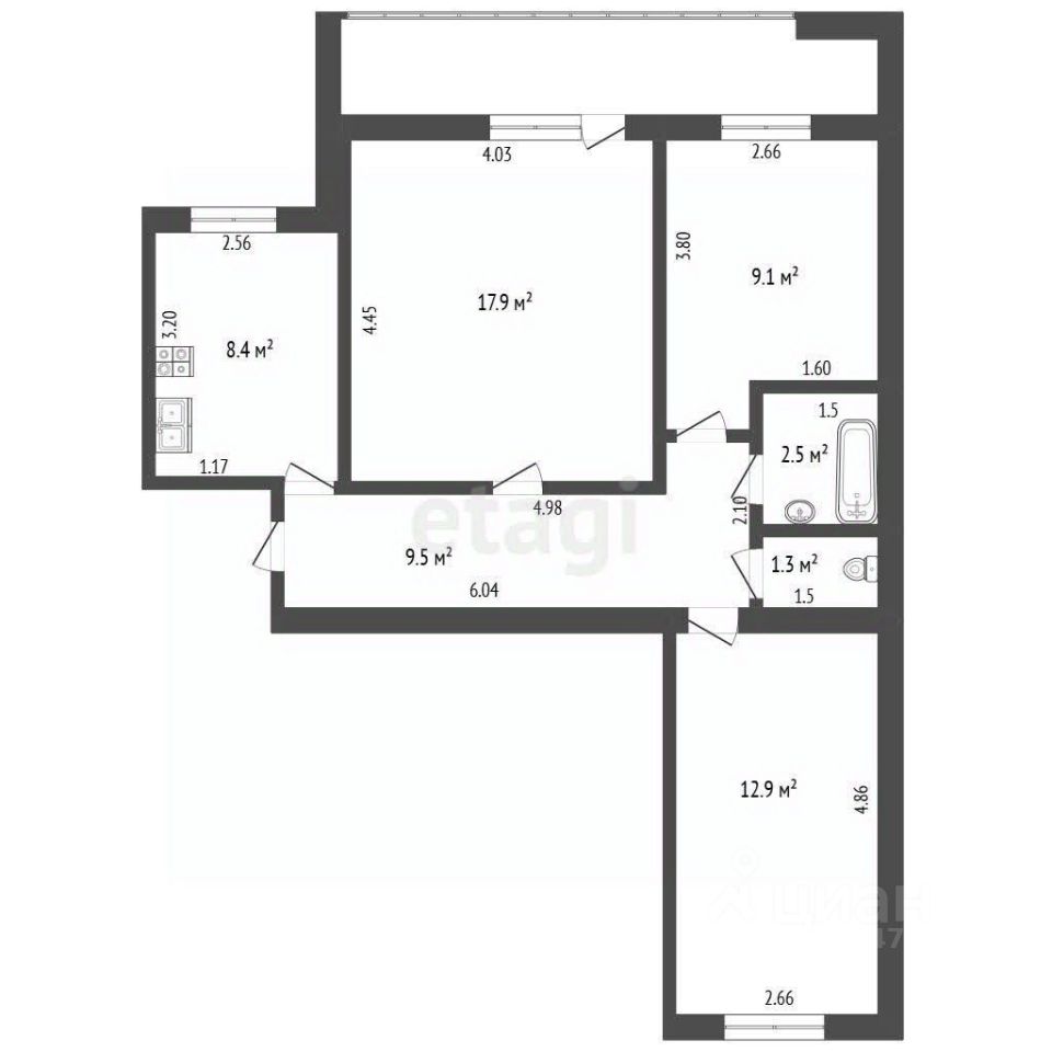 Общая площадь 61,6