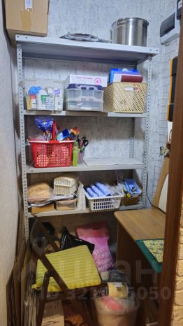 Есть также небольшая кладовка, в которой расположены стеллажи и компьютерный столик.