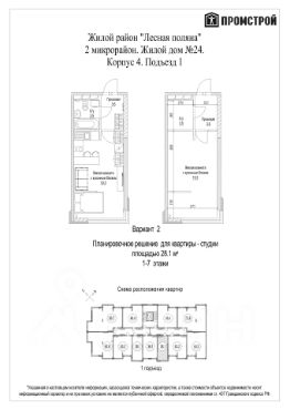 Предлагается к продаже уютная студия площадью 28,1 м², ДОМ СДАН