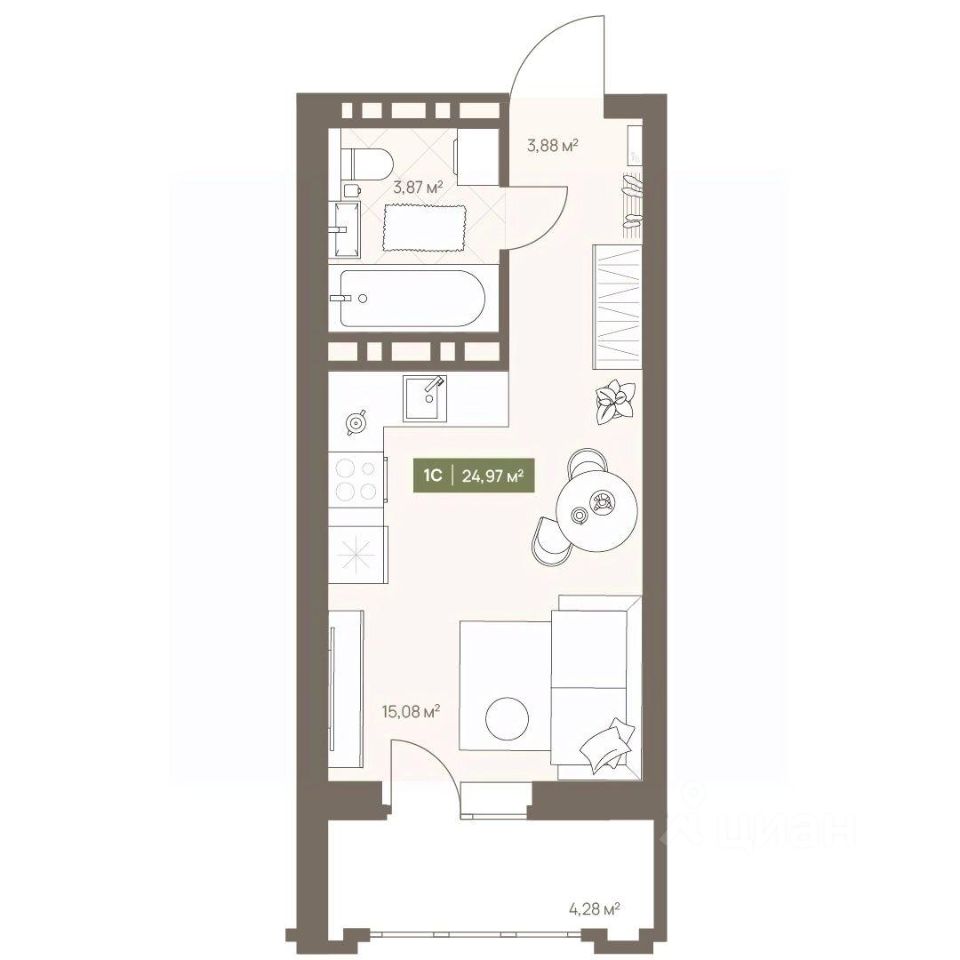 В жилом комплексе NOVA на Московском в продаже квартира N 110 площадью 24.97 кв.м. Кирпич от фасадов до межкомнатных стен, высокие потолки, большие окна и остекленная лоджия. Квартира сдается в отделке white box. 17-этажный дом, с последних этажей которого открываются панорамные виды на город.