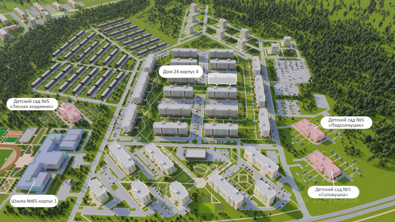 Новый жилой комплекс в городе-спутнике Лесная поляна создан для любителей чистого воздуха, насыщенной зелени и загородной тишины. Продуманная архитектурная композиция из многоквартирных домов и таунхаусов — это стильное пространство с идеальным балансом города и природы. Спокойные оттенки зданий гармонично сочетаются с безмятежностью окружающего вас пейзажа.