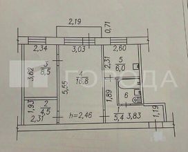 Общая площадь квартиры составляет 44,1 квадратного метра. Вы оцените комфорт изолированных комнат площадью 16 и 12 квадратных метров, а также компактную кухню площадью 6 квадратных метров — идеальные размеры для семейного ужина или завтрака. Высота потолков 2,5 метра создает ощущение пространства и свободы.