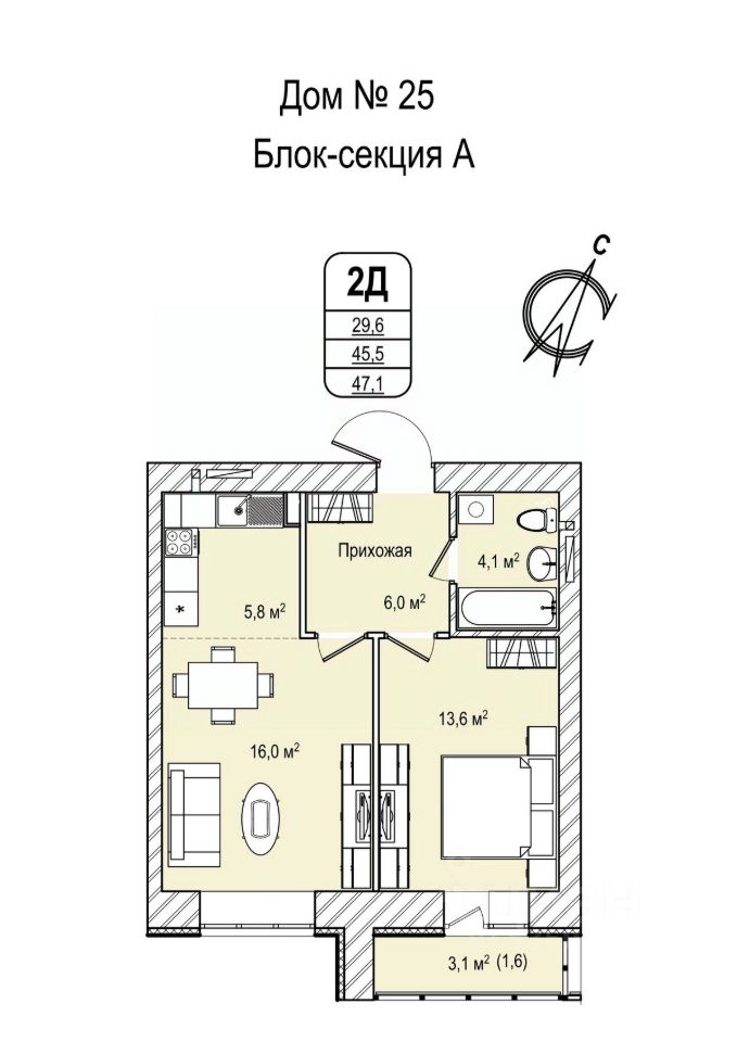 Продаётся 2-комнатная квартира в сданном доме (Восточный пр-т, 33 (Дом 25)), срок сдачи: III-кв. 2025, общей площадью 47.1 кв.м., на 6 этаже. Расположение, транспортная доступность