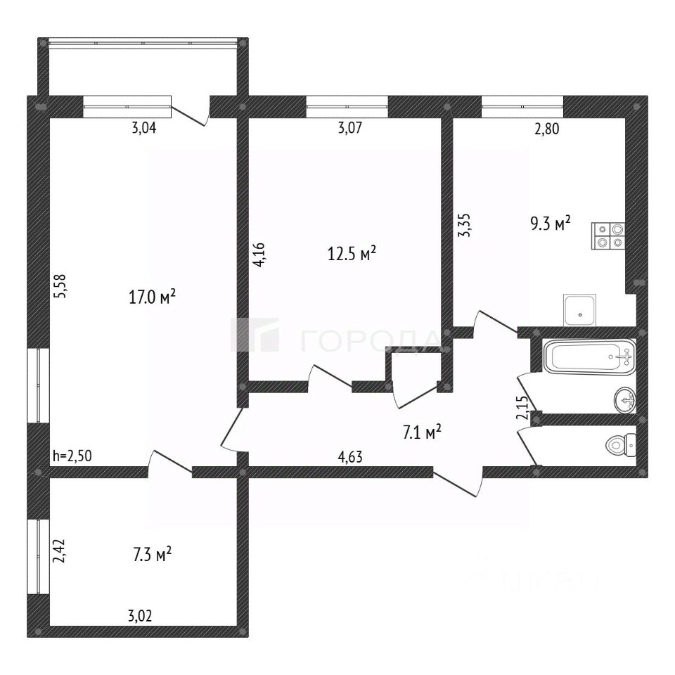 • Общая площадь: 56,5 м²