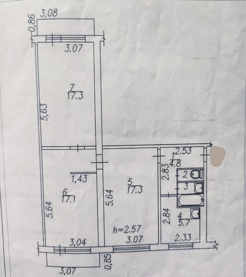 В квартире выполнен частично косметический ремонт, что позволяет быстро въехать и обустроиться. Удобная планировка с раздельными комнатами подойдет как для семьи, так и для тех, кто любит простор. В двух спальнях утеплены и выровнены полы. Кухня площадью 5.7 кв. м оборудована всем необходимым для приготовления пищи. Отдельный санузел — еще одно преимущество этой квартиры, новым жильцам остаётся большой бойлер для нагрева воды, очень удобно (время когда отключают горячую воду).