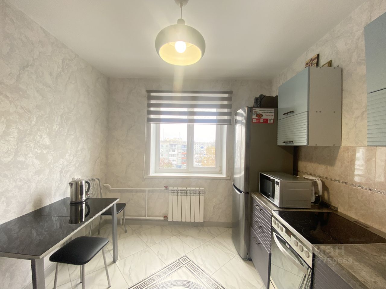 Пол-линолеум, на кухне-кафель