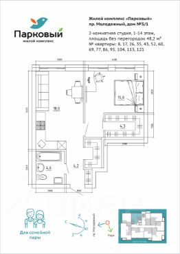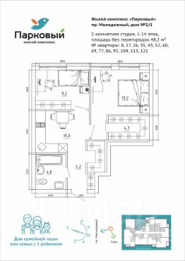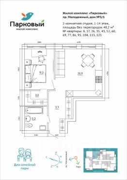 Продается 2-комнатная квартира свободной планировки в новом ЖК "Парковый"!