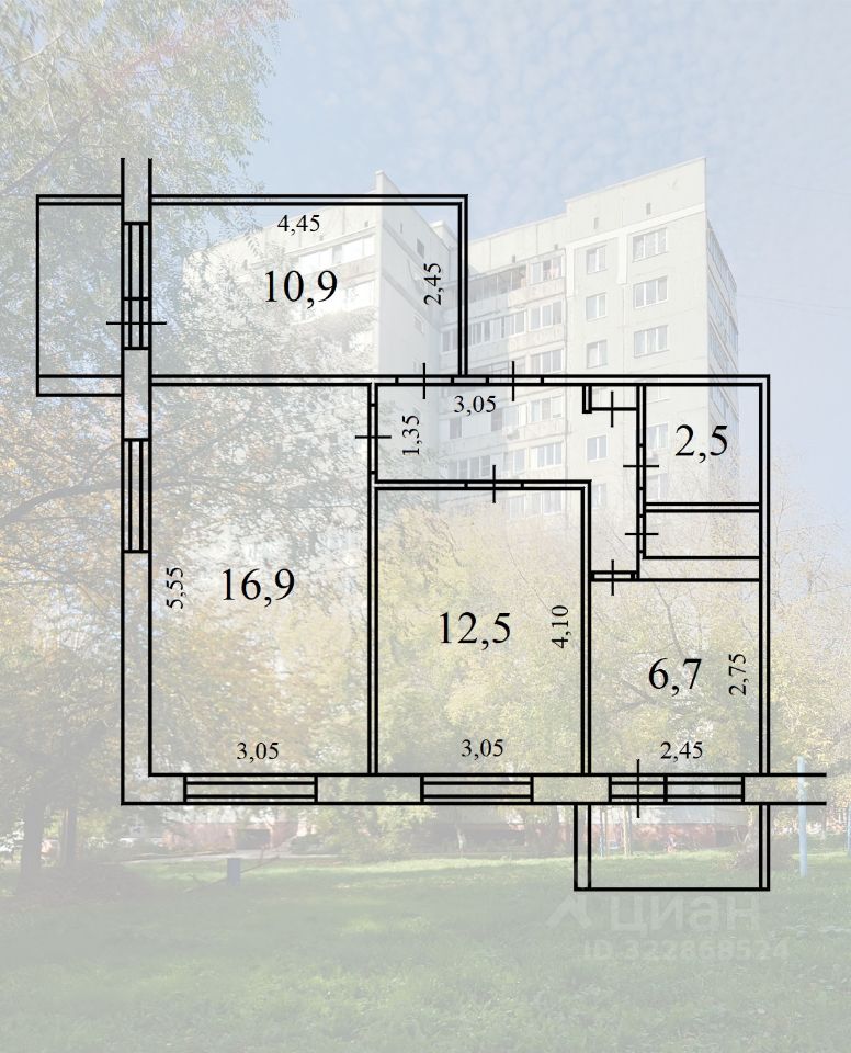 • Квартира расположена на 2м этаже 12и этажного здания, общей площадью 57,3 кв.м.