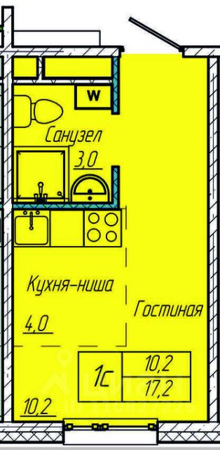 Общая площадь17,2 м²