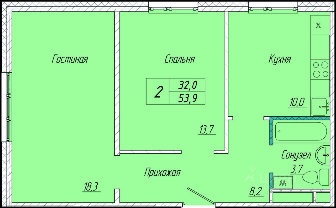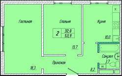 Общая площадь53,9 м²