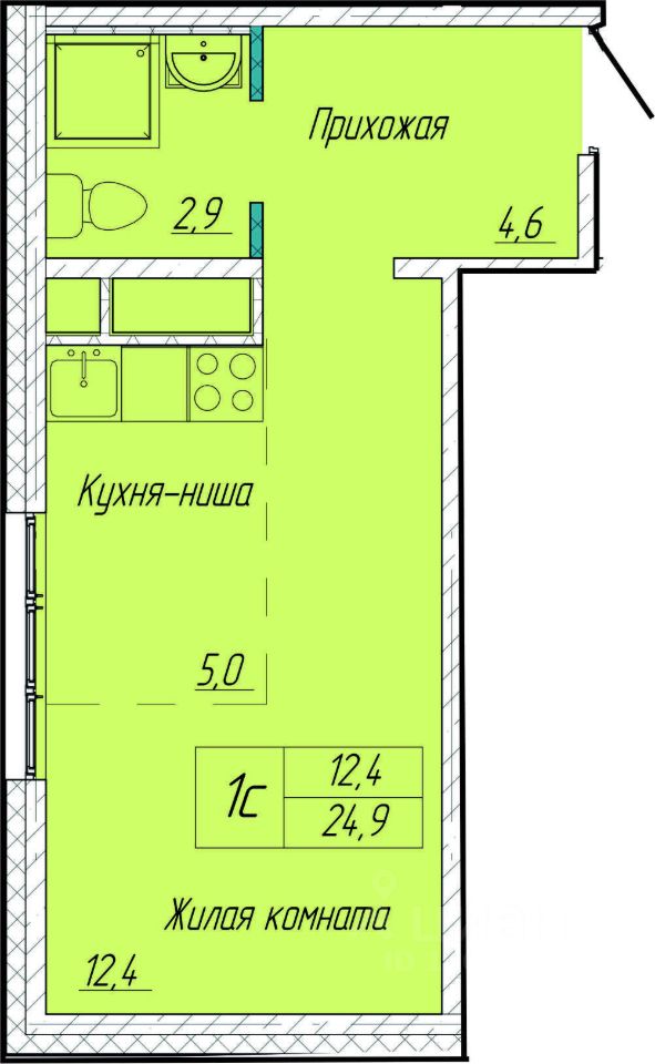 Общая площадь24,9 м²