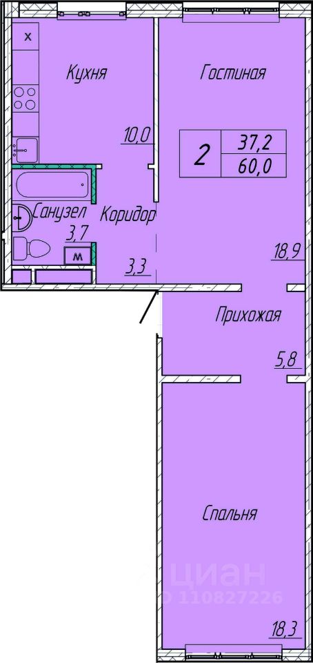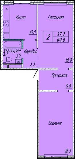 Общая площадь60 м²