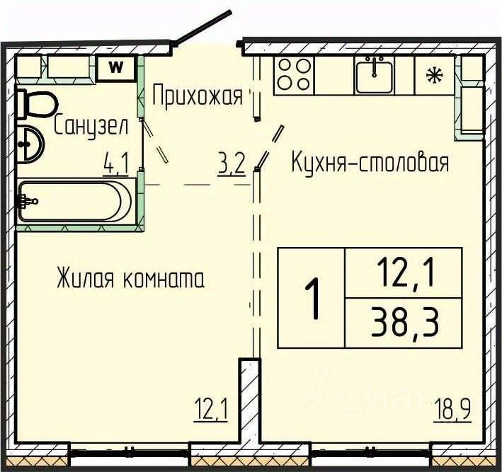 38,3 м²
