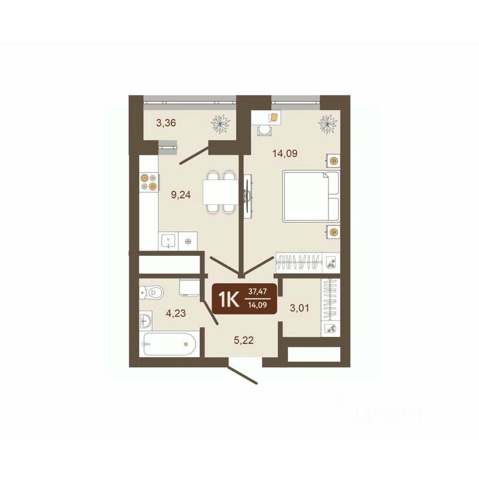 Общая площадь37,47 м²