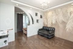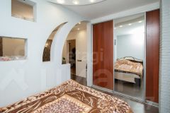 Квартира в настоящий момент превращена в евродвушку при необходимости, где спальная зона огорожена дизайнерской стойкой, оснащена собственным шкафом-купе и имеет выход на шикарный балкон с панорамным остеклением. Балкон, в свою очередь, выполнен в плитке, под плиткой установлен теплый пол, который даст возможность насладиться зимними вечерами в тепле и уюте.