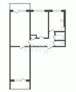 Из коридора, длиной на всю ширину квартиры, входы в раздельные три комнаты.