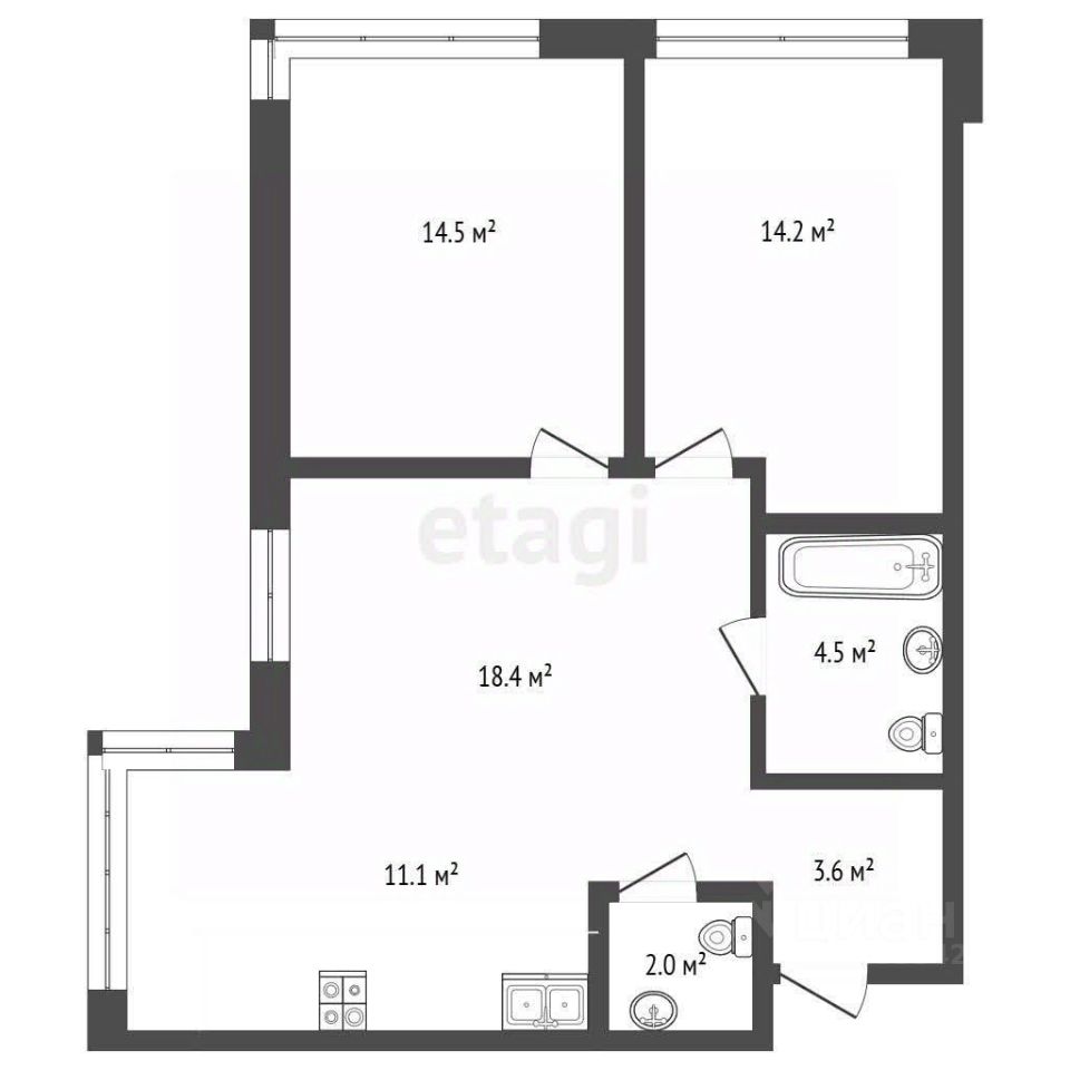 Квартира общей площадью 69,4 кв.м расположена на уютном 4-м этаже современного дома высотой 15 этажей.