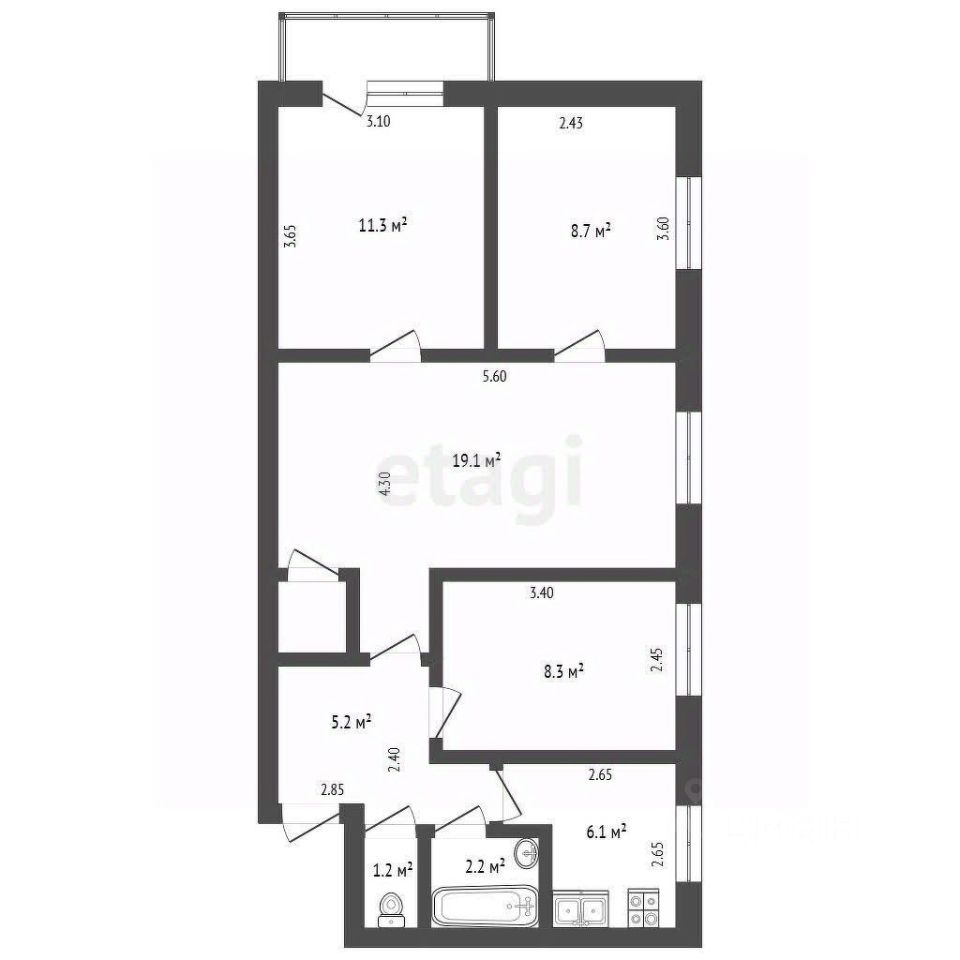 63,1 м²