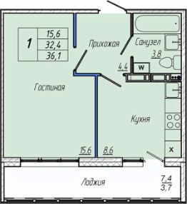 Общая площадь36,1 м²