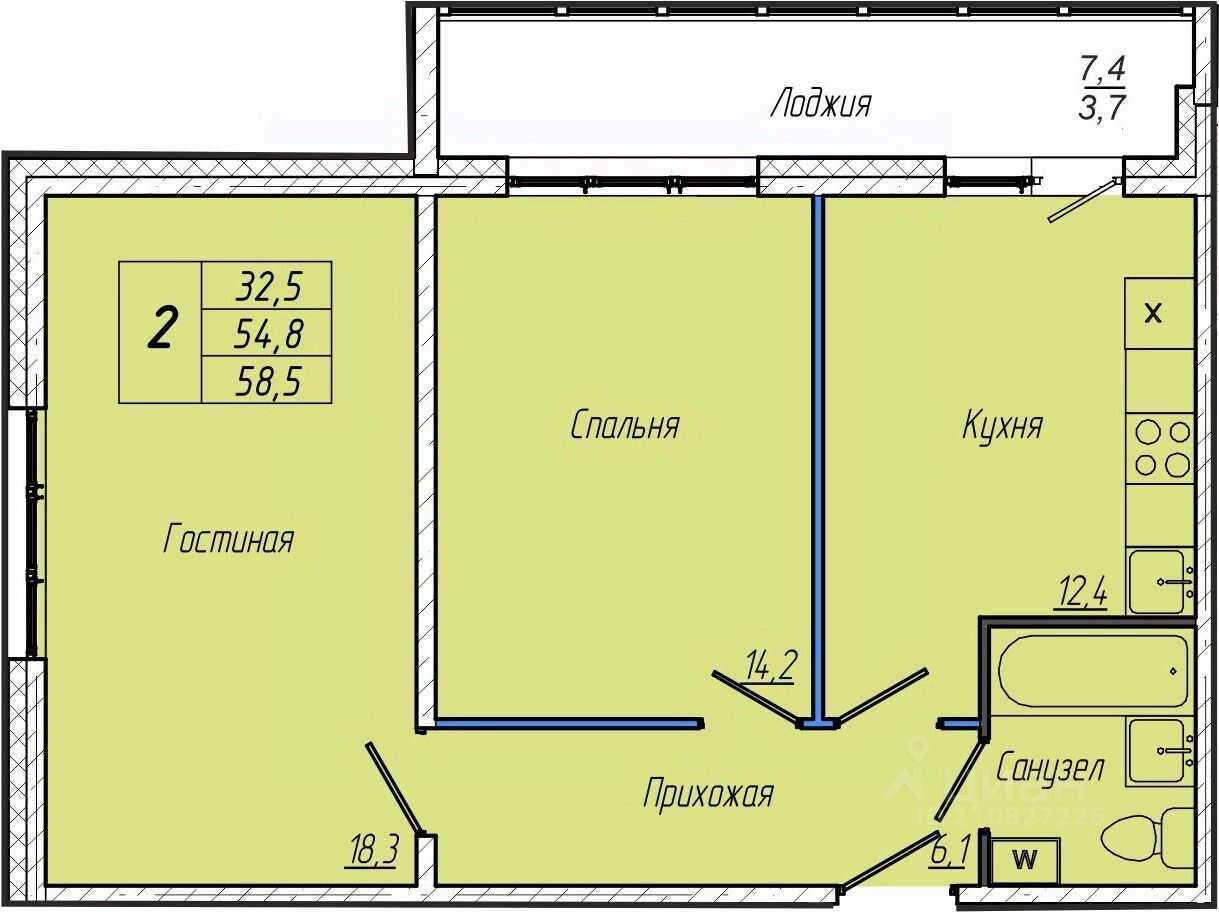 Общая площадь58,5 м²
