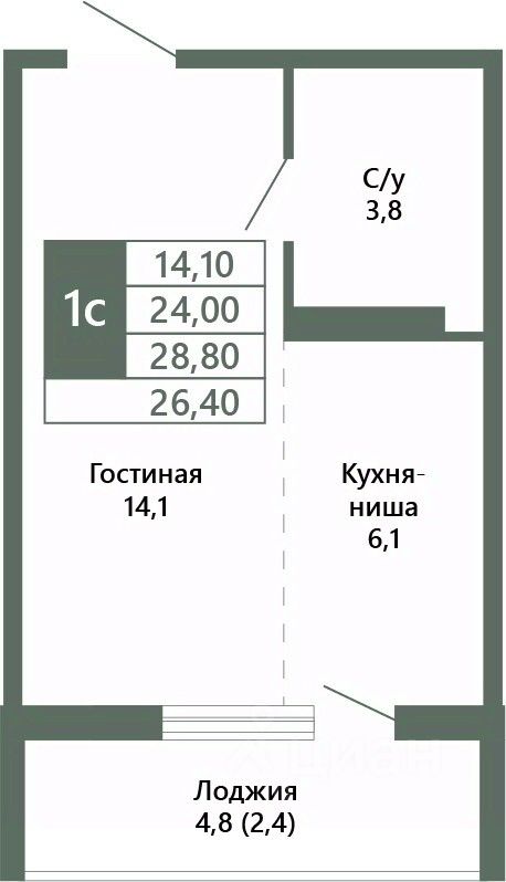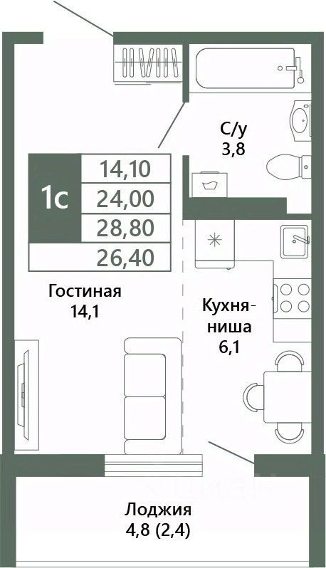 Общая площадь26,4 м²
