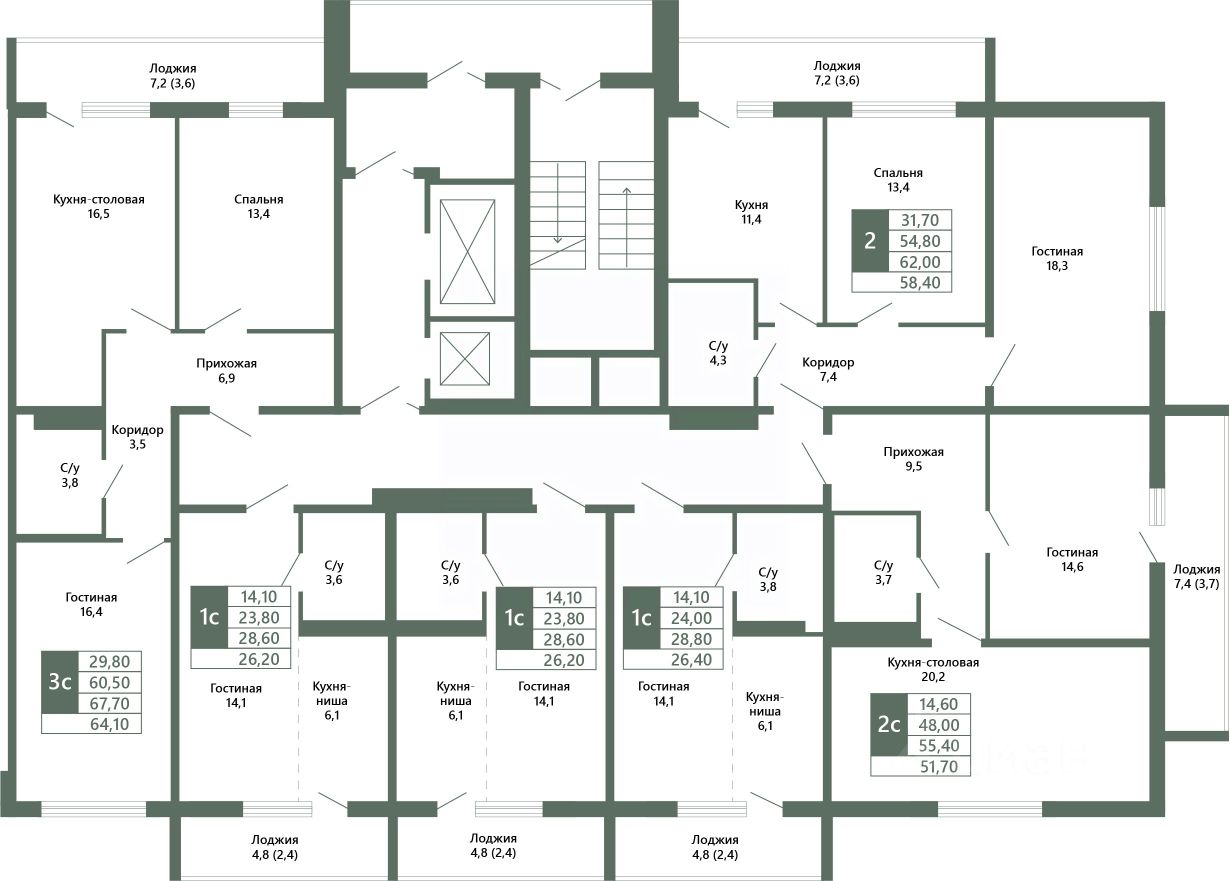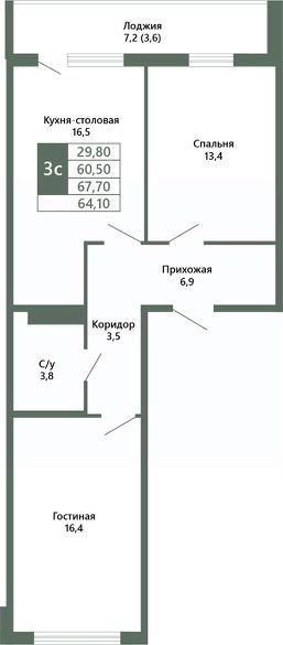 Общая площадь64,1 м²