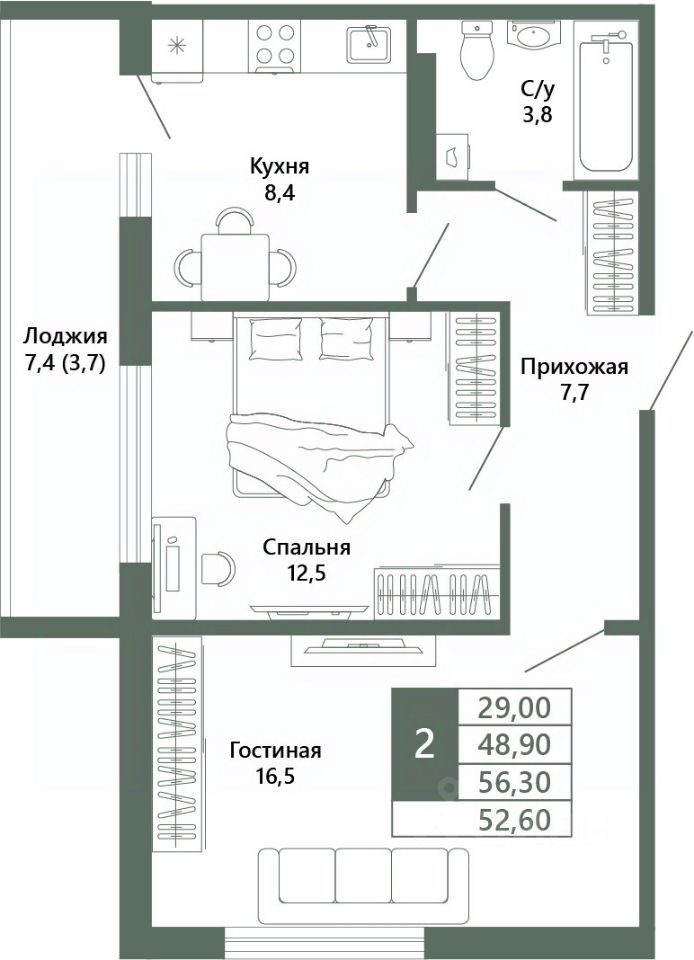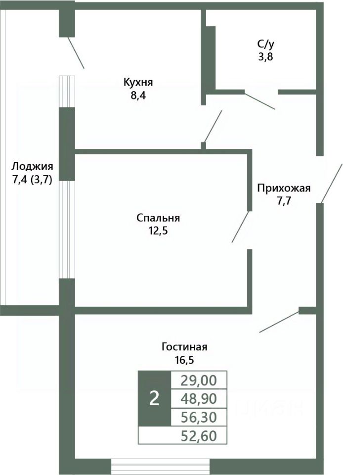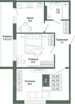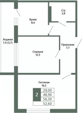 Общая площадь52,6 м²