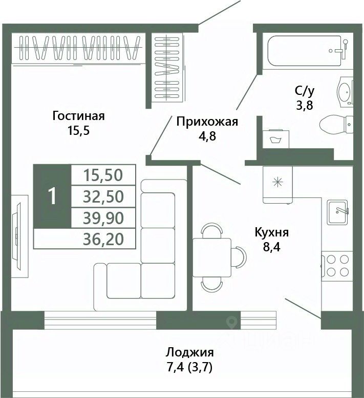 1 лоджия