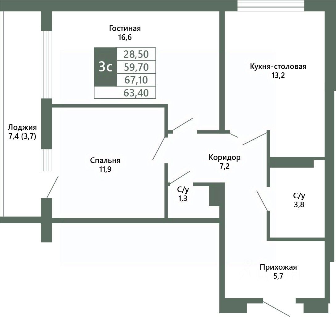 Общая площадь63,4 м²