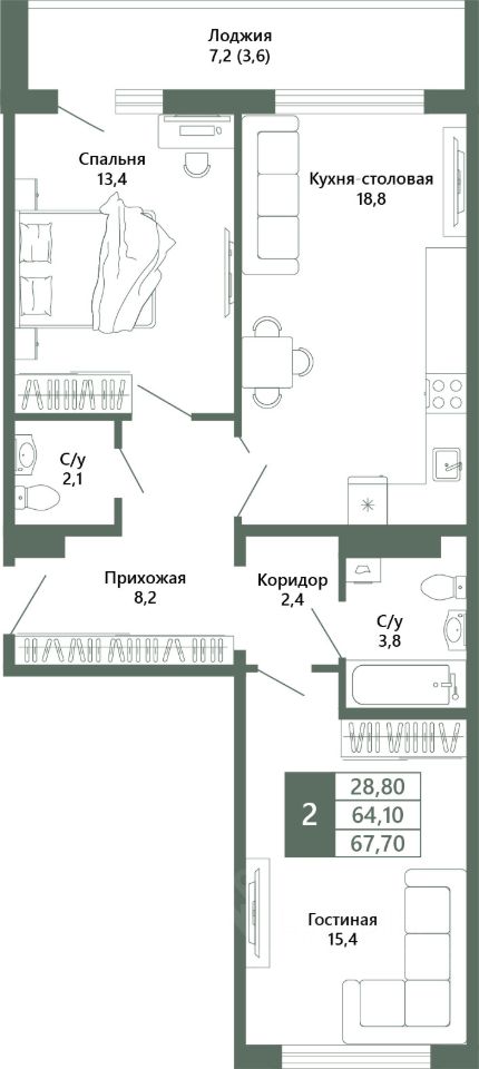 Общая площадь67,7 м²