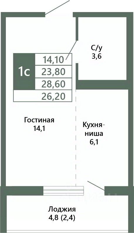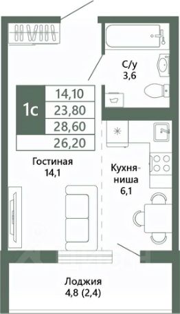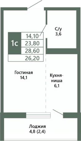 Общая площадь26,2 м²