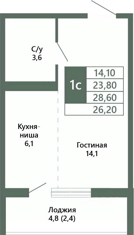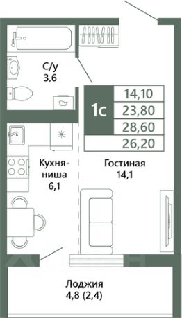 Общая площадь26,2 м²