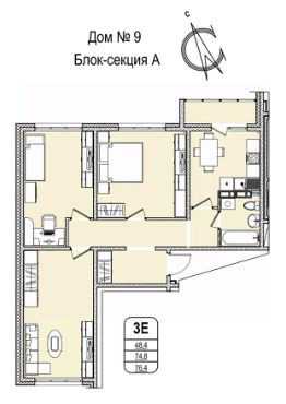 76,9 м²