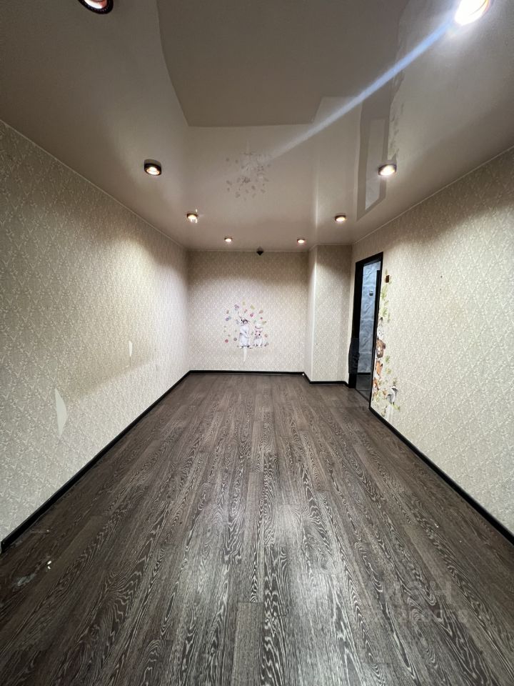 На стенах поклеены обои, на полу постелен качественный линолеум.Во всей квартире - натяжной потолок с точечными светильниками.