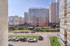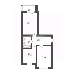 Дом кирпичный, высота потолков 2,7 м, площадь квартиры 55,8 м2 и лоджия 3 м2, комнаты :16,7м2 и 15,7м2, кухня 10,1м2. Окна выходят на две стороны во двор и на бульвар Строителей.